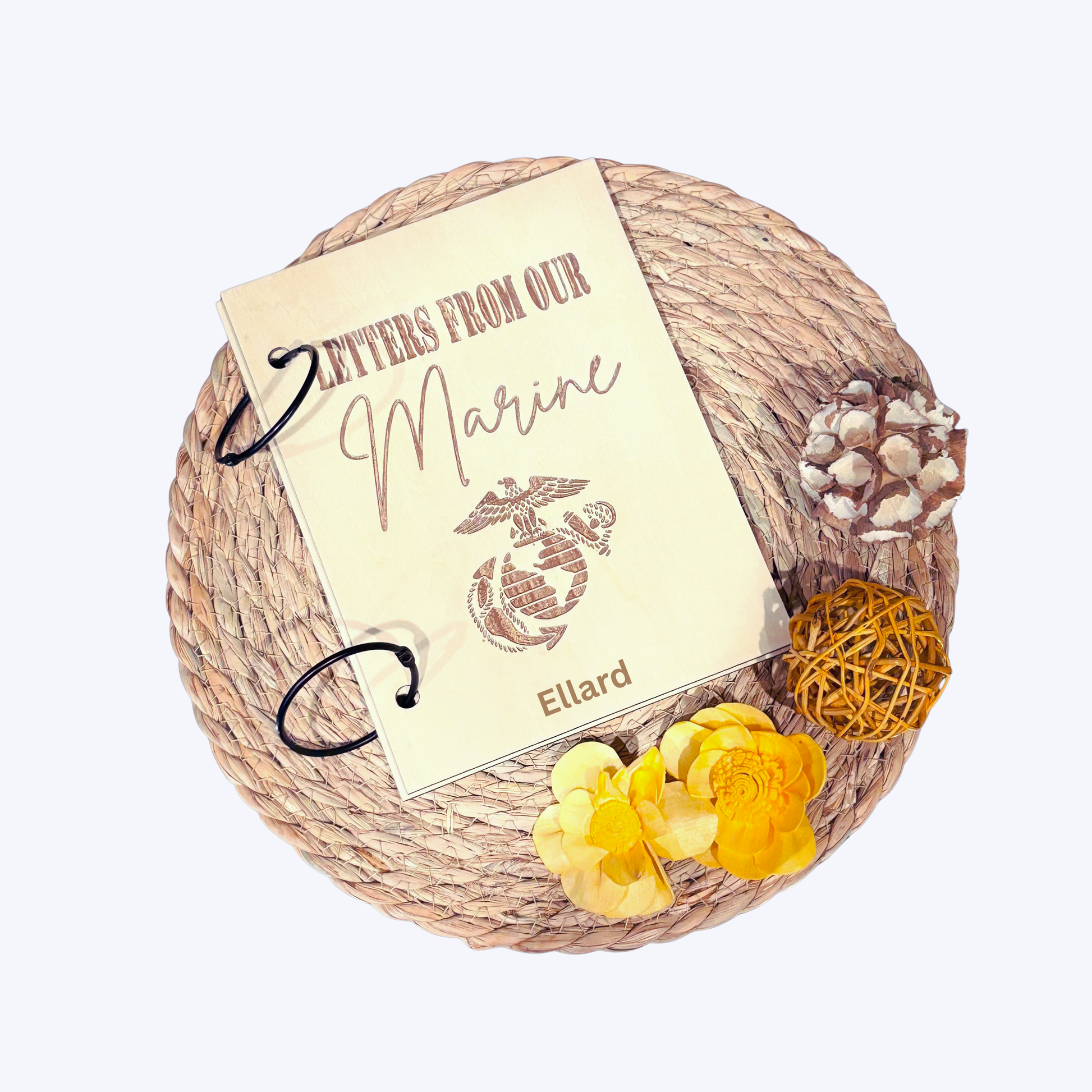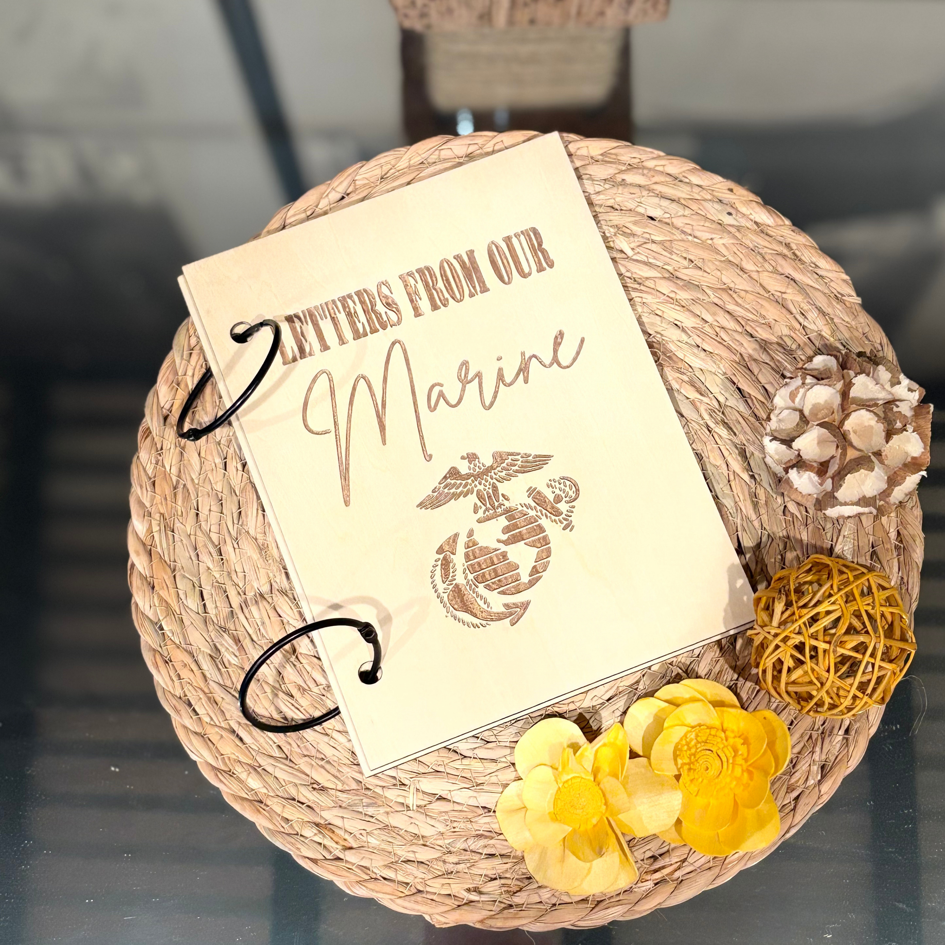 Boot camp and deployments are filled with letters that tell the story of courage, sacrifice, and love. This laser-cut wooden keepsake book is the perfect way for parents, spouses and loved ones to save and treasure every word.