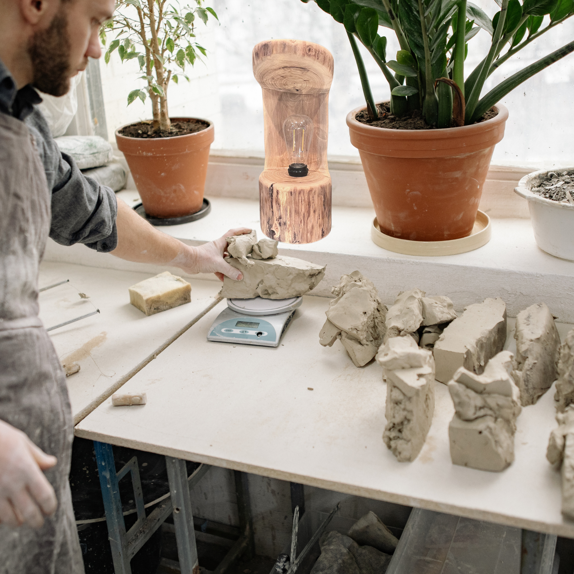 Bring warmth and rustic charm into your space with this handcrafted wooden log lamp. Carefully crafted by John, this one-of-a-kind piece is made from a single reclaimed log, highlighting the natural beauty of wood grain, knots, and textures.